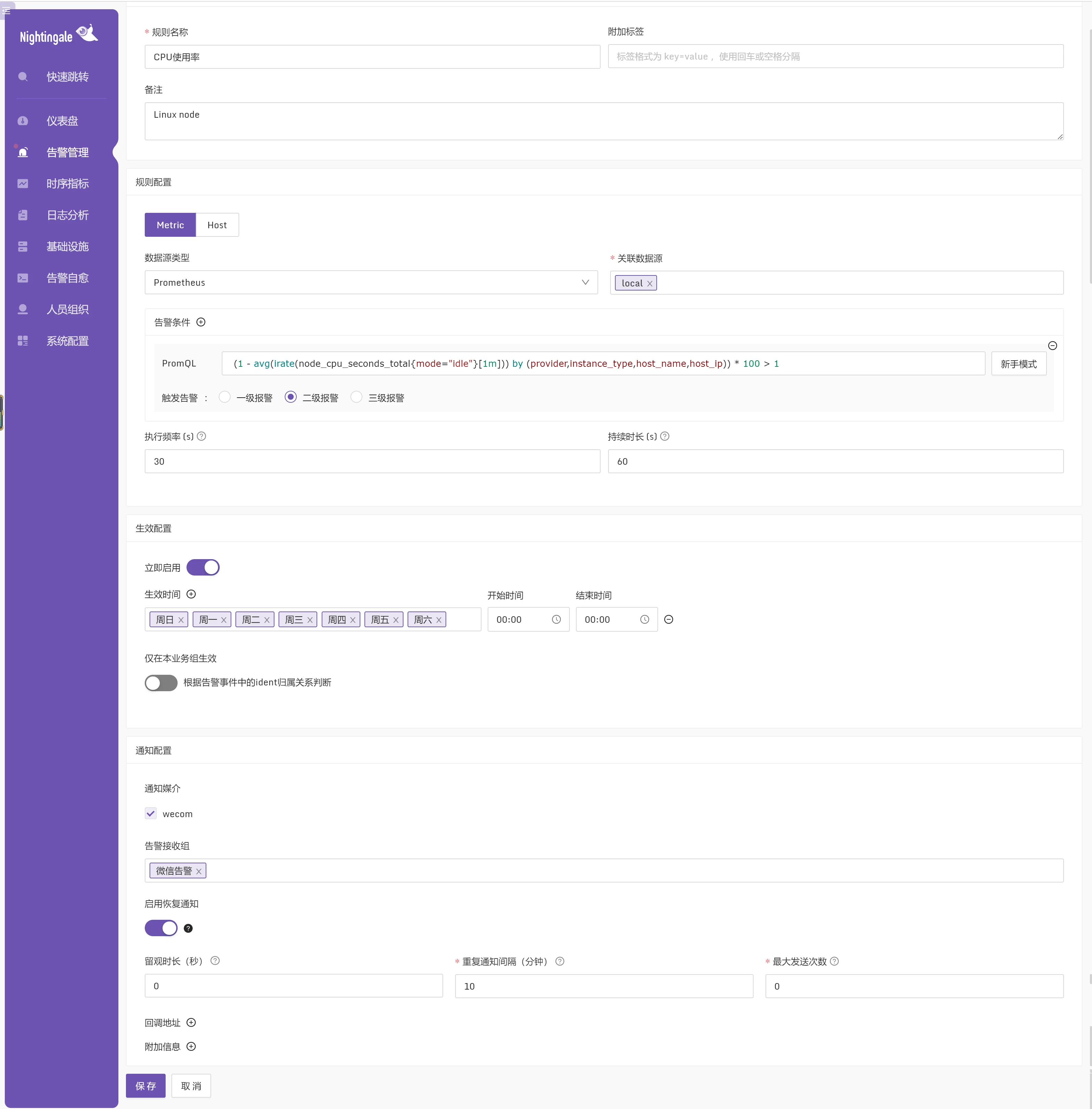 最终我选择了夜莺,实际部署调试后,可以满足我的告警需求。